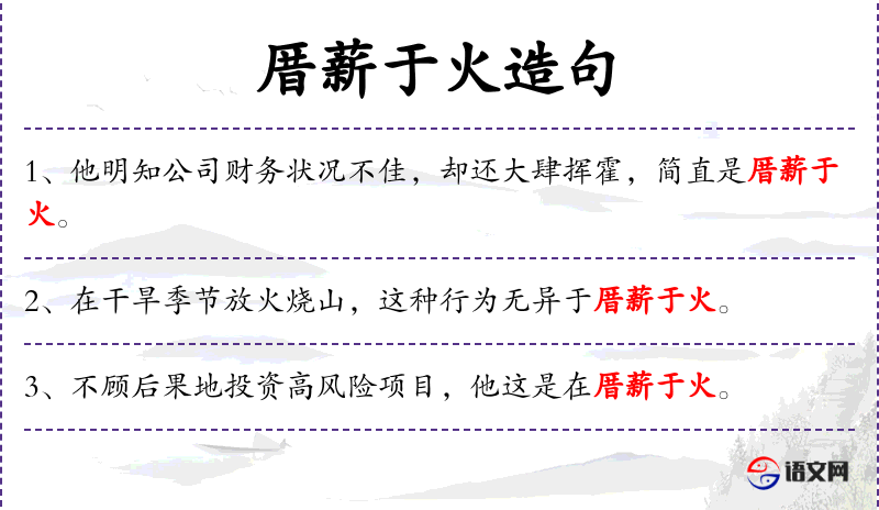 - 厝薪于火:piling firewood under a fire