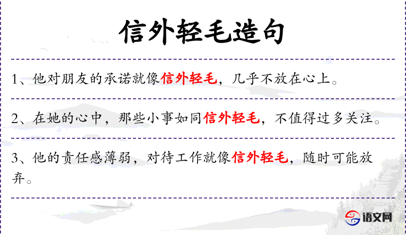 - 成语典故:这个成语可能源自古代书信文化,信外轻毛指的是书信外附带的轻微物品,比喻极小的附加物。