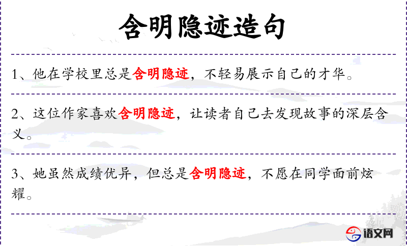 - 谓语:含明隐迹、默默贡献、不求名利