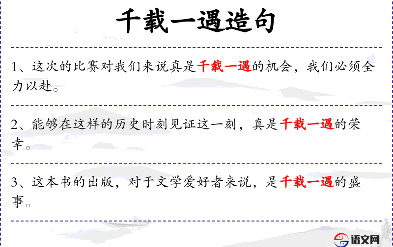- 千载一遇:成语,形容非常难得、极其珍贵。