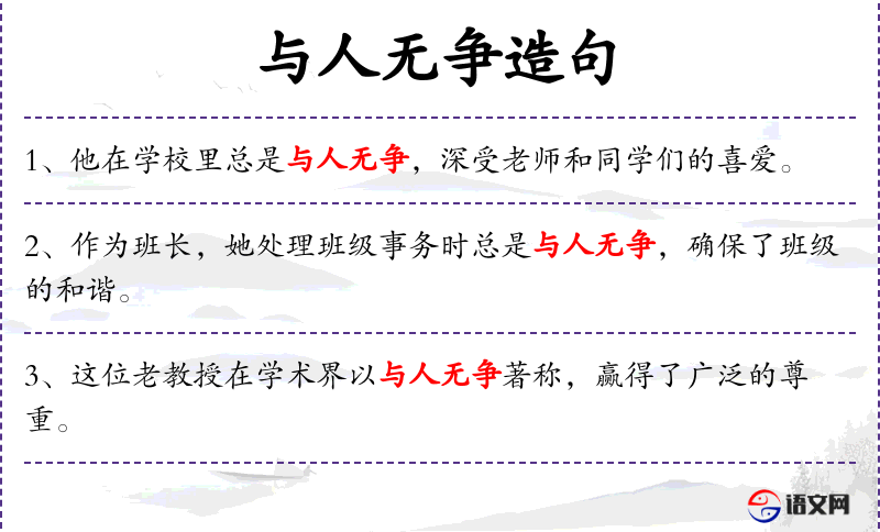 1. 【与人无争】 - 不跟社会上的人发生争执。这是一种消极的回避矛盾的处世态度。