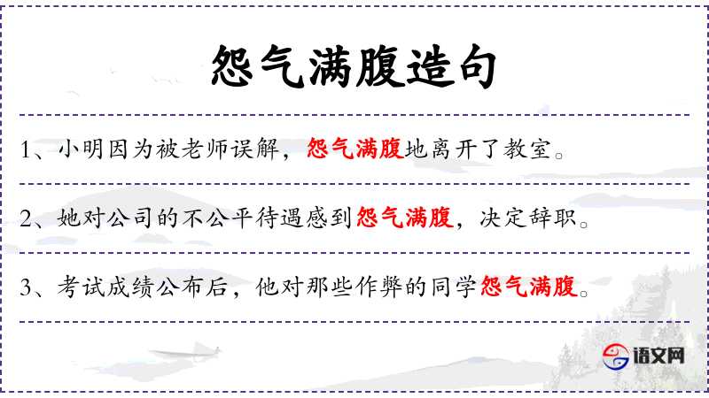 - 使用“怨气满腹”这样的成语增加了表达的情感强度,使得语气更加强烈和明确。