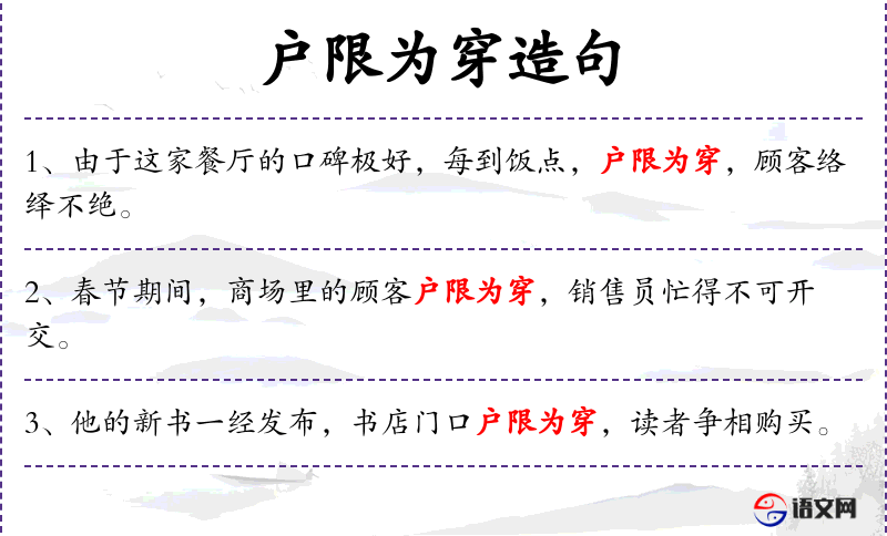 - 总是户限为穿:形容人非常多,以至于门口都被挤得无法通行。