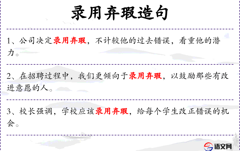 - 弃瑕:字面意思为放弃瑕疵,此处可能指某人虽然有缺点但仍被录用。