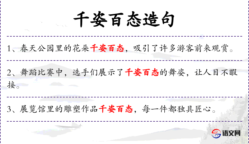 - 相关成语:“千姿百态”源自**传统文化,形容事物形态多样。