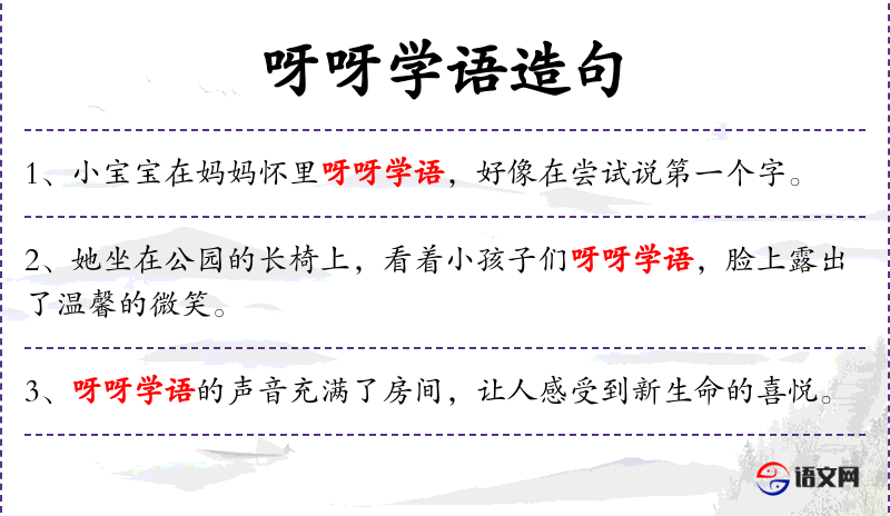 - 呀呀学语:指婴儿开始尝试说话的阶段,发出不清晰的声音。