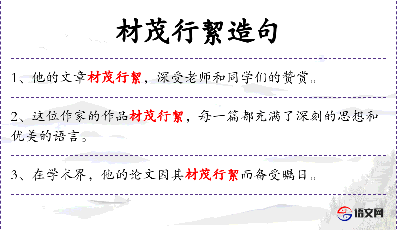 1. 【材茂行絜】 - 絜,同“洁”,干净,廉洁。才智丰茂,行为廉洁。