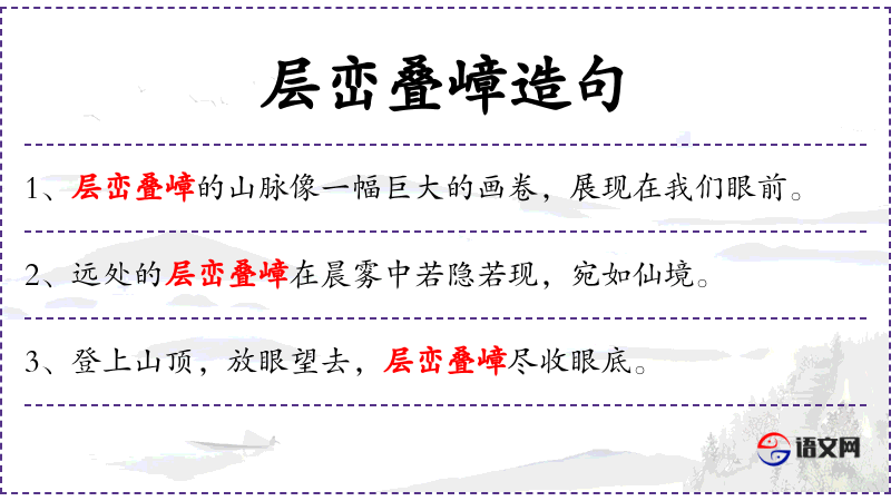 - 主语:“层峦叠嶂的景色”