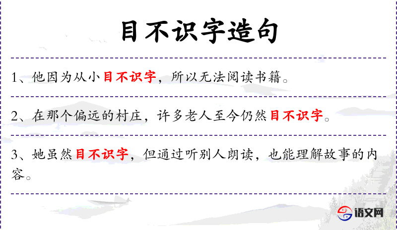 4. 【目不识字】 指一个字也不认得。