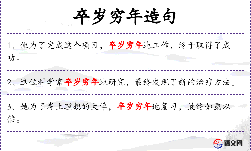 句子:“这位科学家卒岁穷年地研究,最终发现了新的治疗方法。”