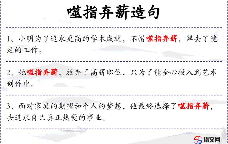 句子:“面对家庭的期望和个人的梦想,他最终选择了噬指弃薪,去追求自己真正热爱的事业。”