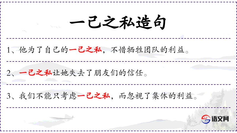 - 一己之私:指个人自私的利益或动机。