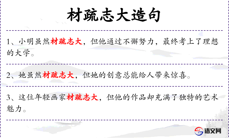 2. 【材疏志大】 - 指志向虽大而才能不足。有时用为谦词。