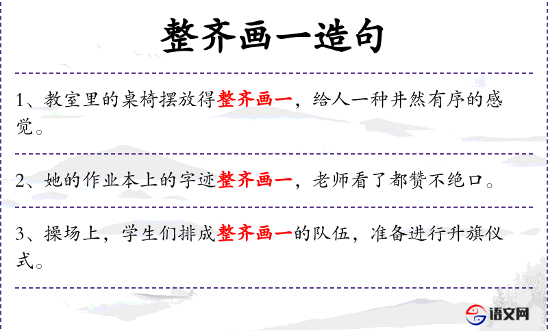 - 补语:整齐画一