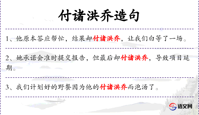 句子:“他原本答应帮忙,结果却付诸洪乔,让我们白等了一场。”