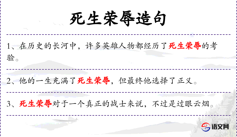 5. 【死生荣辱】 指死亡、生存、荣耀、耻辱。