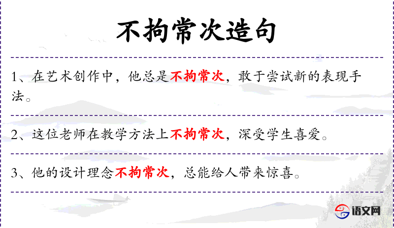 1. 【不拘常次】 - 不拘泥于寻常的次序、等级。指破格提拔,越级使用。