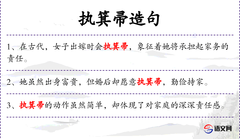 句子:“她执箕帚的样子,让人感受到她对家庭的深厚情感。”