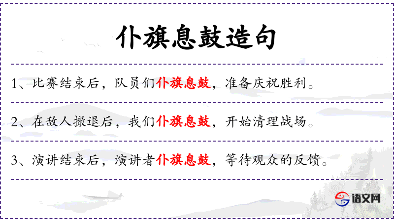 - “仆旗息鼓”这个成语源自军事用语,反映了汉语中丰富的成语文化。