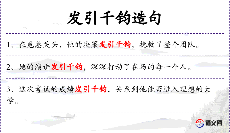 - 发引千钧:这个成语源自**文化,比喻情况极其危急或影响极其重大。