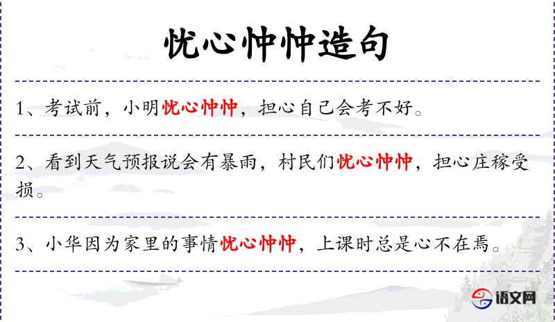 - 忧心忡忡:形容词,表示非常担心和焦虑。