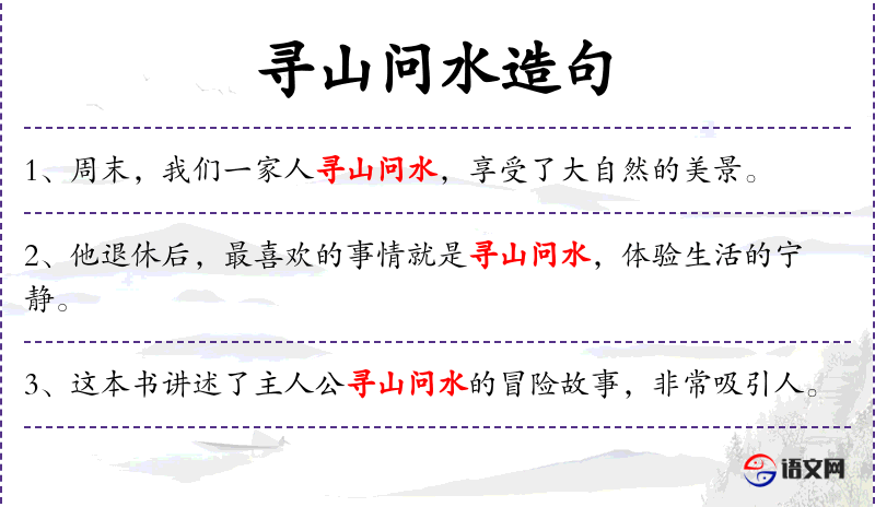 - 寻山问水:比喻游览山水,体验自然之美。 *. 感受:体验或察觉到某种感觉或情感。