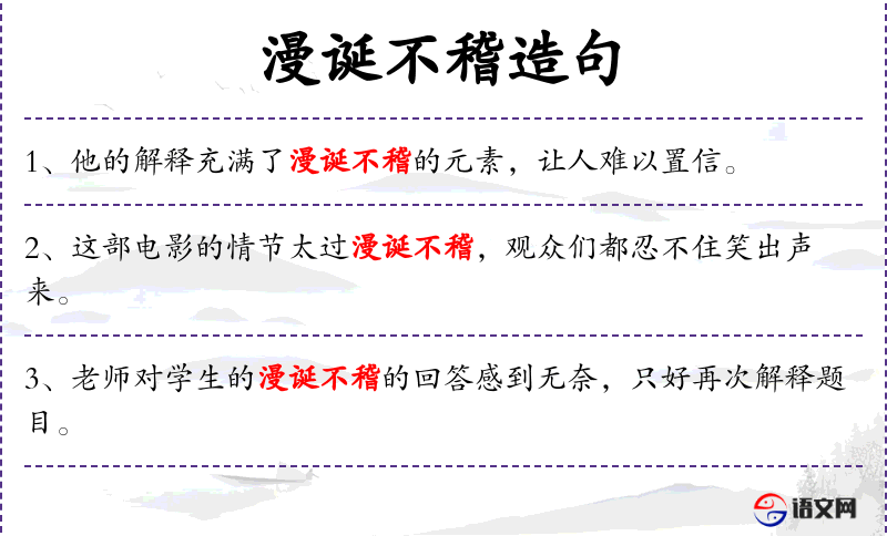 6. 【漫诞不稽】 漫:随意;不稽:没有根据。随便乱说,荒诞不实,没有根据。