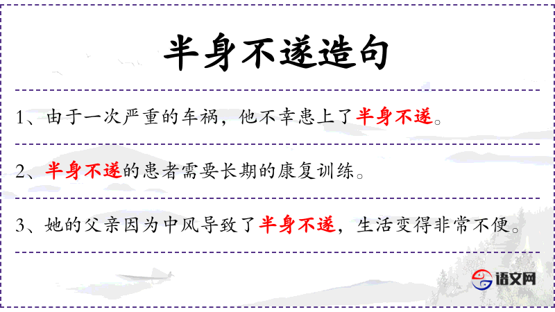 - 半身不遂:指身体一侧的肌肉或神经功能丧失,常用于描述中风后的状况。