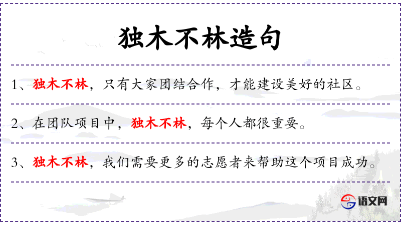 一棵树成不了森林。比喻个人力量有限,办不成大事。