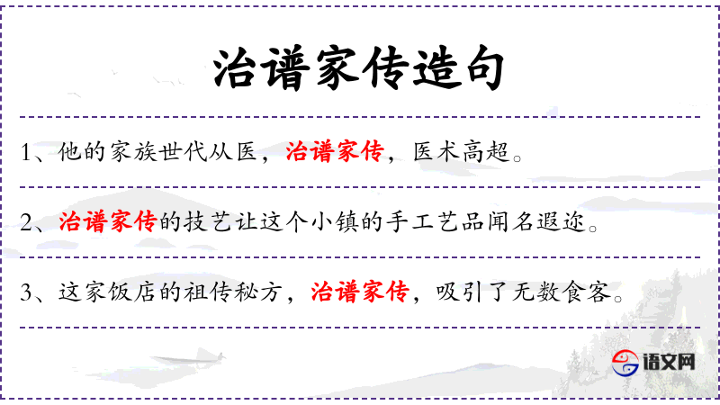 3. 【治谱家传】 - 谱:治理的方案。管理方案只传给子孙。后形容父子兄弟作官都有政绩。