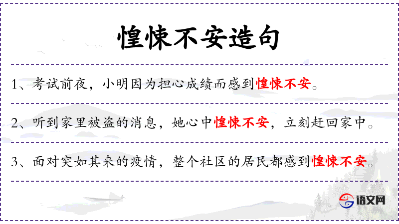 - 小明在考试前夜因为对成绩的担忧而感到惶悚不安。