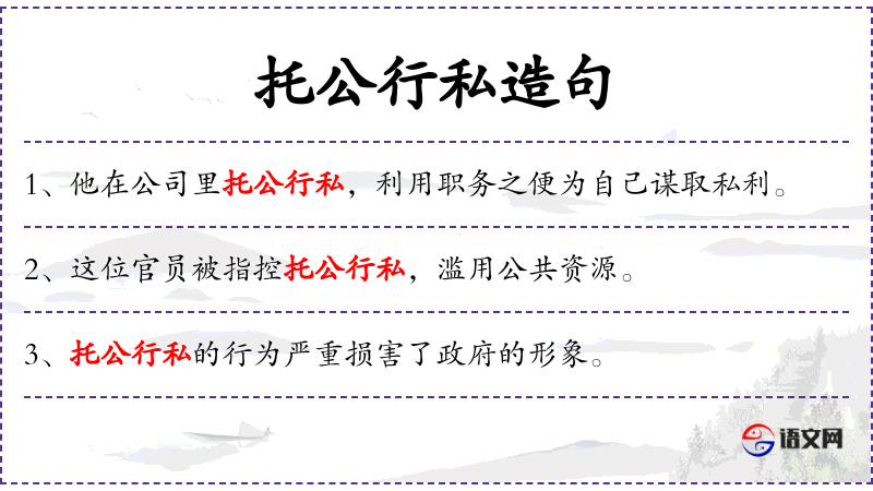 - 托公行私:指利用公职为自己或他人谋取私利。
