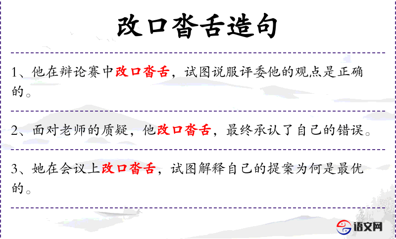 - 成语典故:“改口沓舌”可能源自古代的谈判或辩论场合,形容说话反复无常,策略多变。