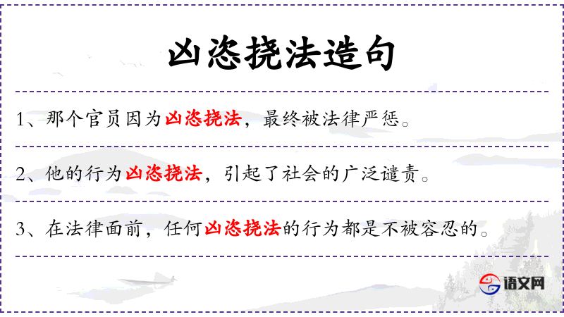 句子:“那个官员因为凶姿挠法,最终被法律严惩。”