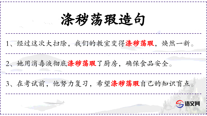 4. 【涤秽荡瑕】 - 指清除旧的恶习。同“涤瑕荡秽”。