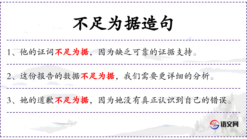 1. 【不足为据】 足:够得上;据:证据。不能作为依据。