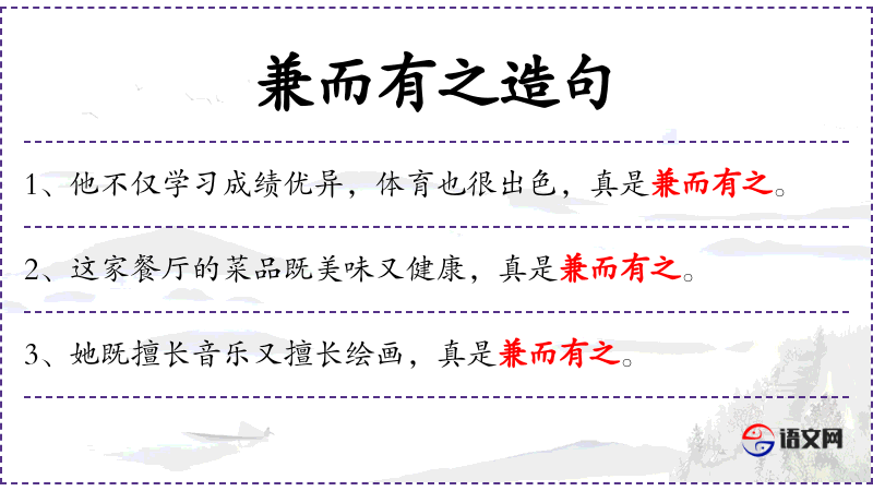- 成语“兼而有之”源自《论语·卫灵公》,原文为“君子不器”,后演变为表示同时具备多种特点的成语。
