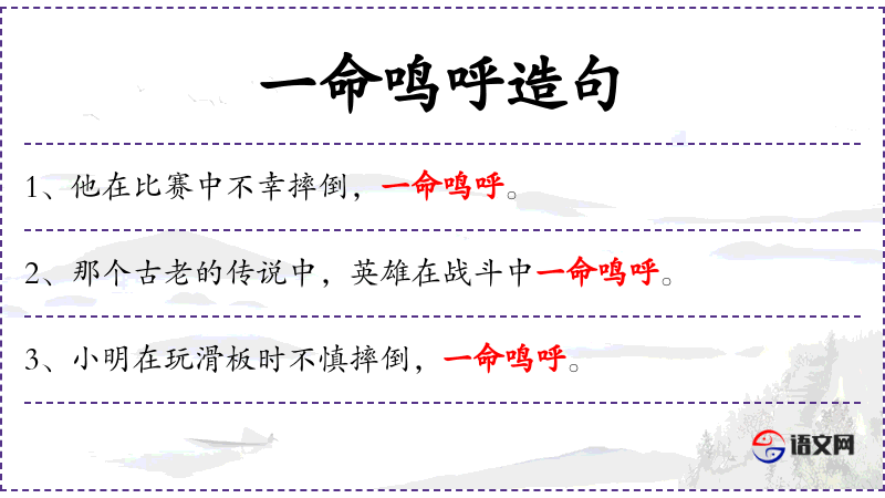 - 补语:一命鸣呼