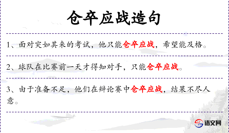 1. 【仓卒应战】 指没有准备匆忙对付。