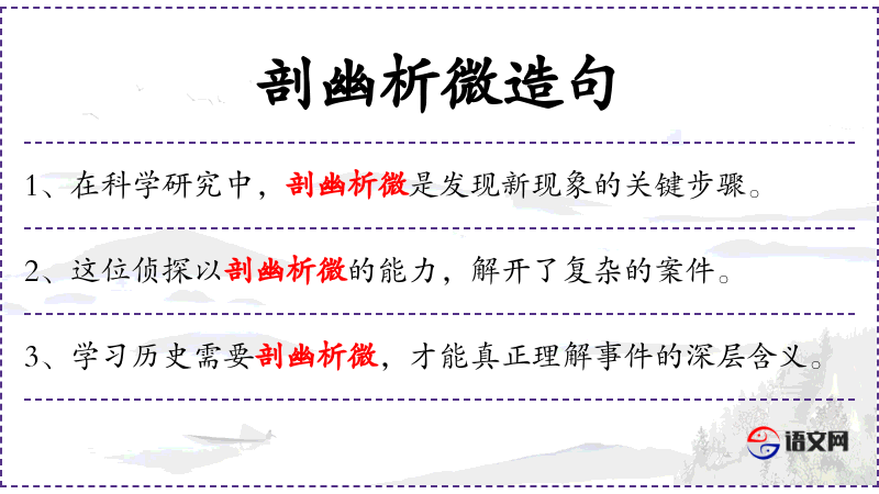 - 主语:剖幽析微