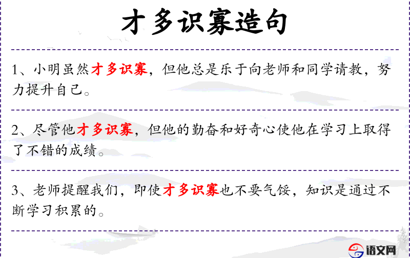 - 才多识寡:指知识面广但深度不够。