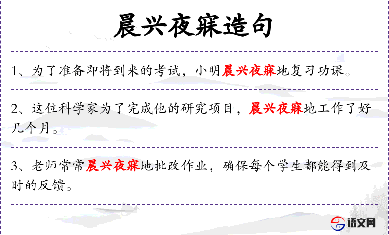 5. 【晨兴夜寐】 - 兴:起。早起晚睡。形容勤劳辛苦。