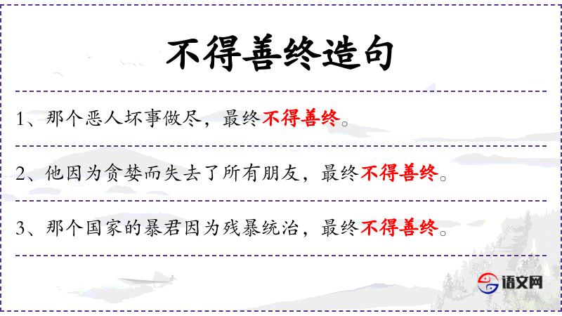 - 不得善终:成语,表示没有好的结局。