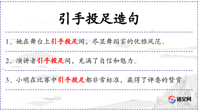 - 引手投足:成语,形容人的举止和动作。