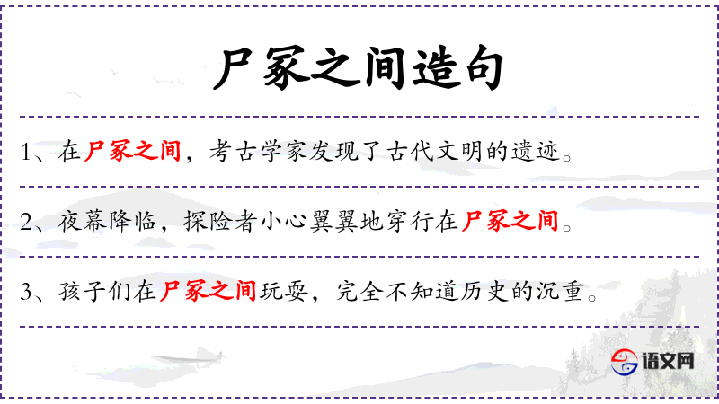 - “在尸冢之间,诗人吟诵着,抒发着对往昔的哀思。”