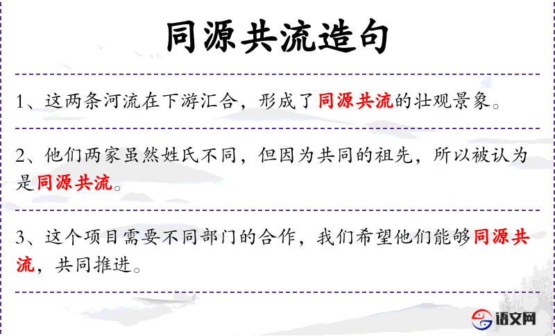 - 同源共流:指虽然源头不同,但最终汇合在一起流动。