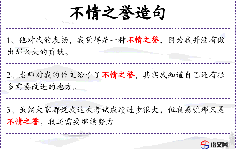 1. 【不情之誉】 - 不合情理的赞誉。