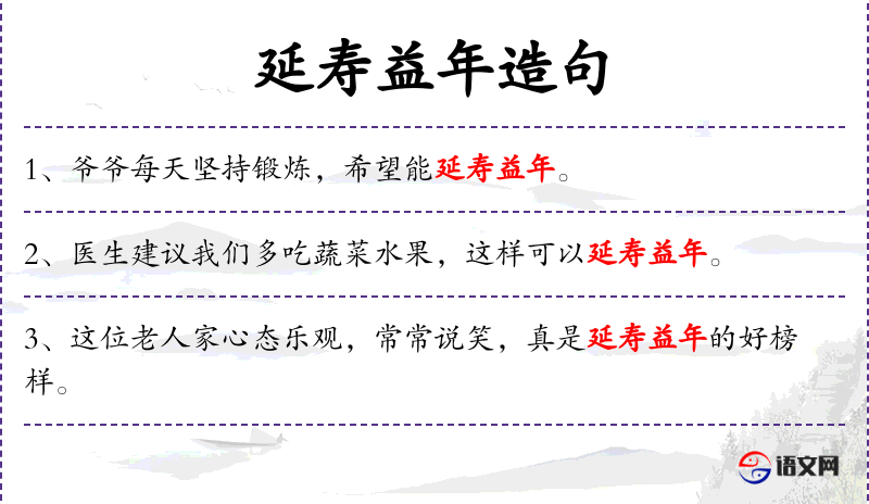 - 延寿益年:指延长寿命,增加年岁。