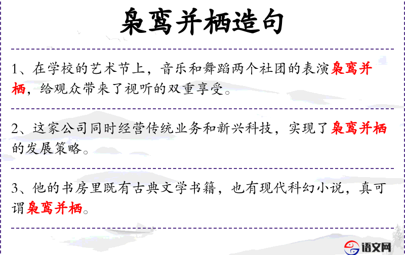 3. 【枭鸾并栖】 - 枭:猫头鹰;鸾:古代传说中的一种像凤凰的神鸟。比喻坏人和好人,或小人与君子混杂在一起。