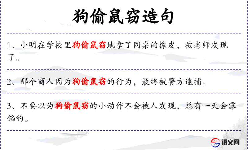 3. 【狗偷鼠窃】 - 像鼠狗那样的盗贼。比喻成不了气候的反叛者。同“狗盗鼠窃”。